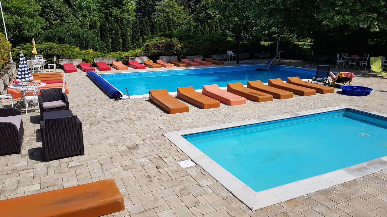 Épület, medencék, strand, Csopak
